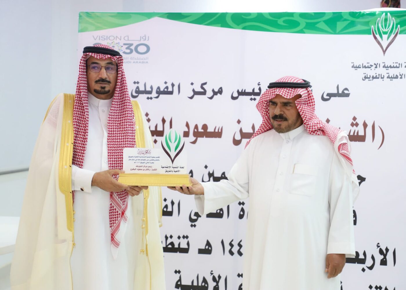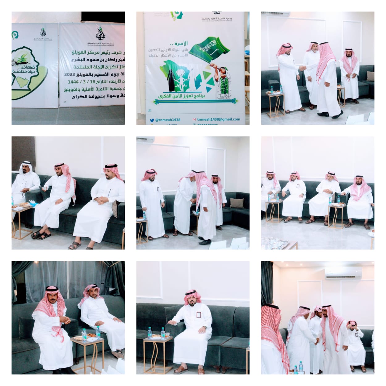 على شرف رئيس مركز الفويلق الشيخ راكان بن سعود البشري وبحضور رئيس قسم الجمعيات الأهلية بالقصيم سعادة الأستاذ ياسر الحيسون